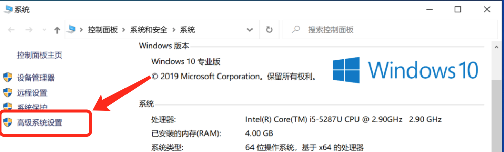 2、在系统对话框中点击高级系统设置进入系统属性对话框。