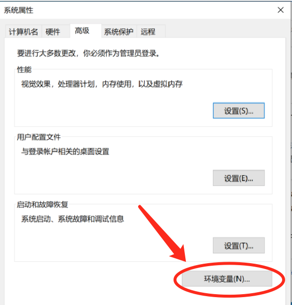3、在系统属性对话框。 点击高级中的环境变量...,进入环境变量对话框